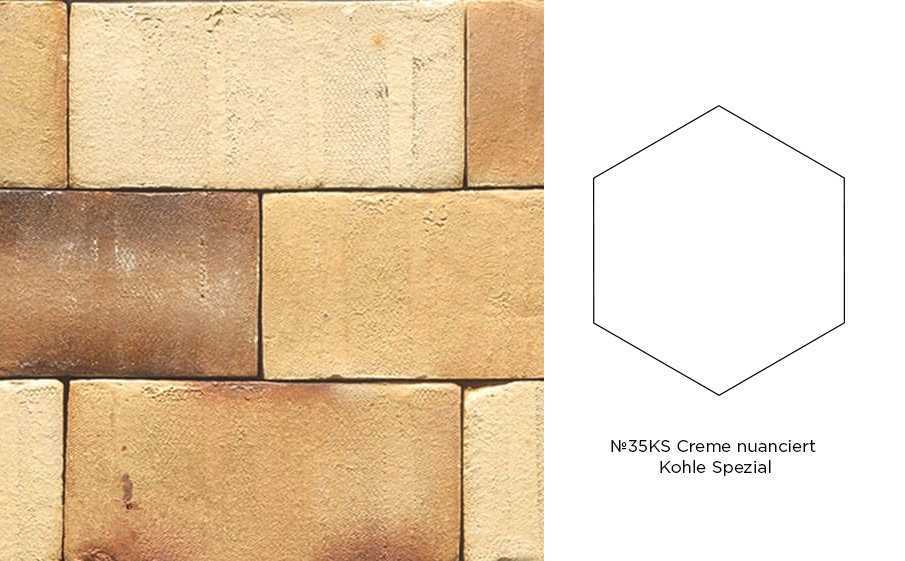 Клинкерная брусчатка Muhr №35KS Creme nuanciert Kohle Spezial, гексагон 200x52 мм