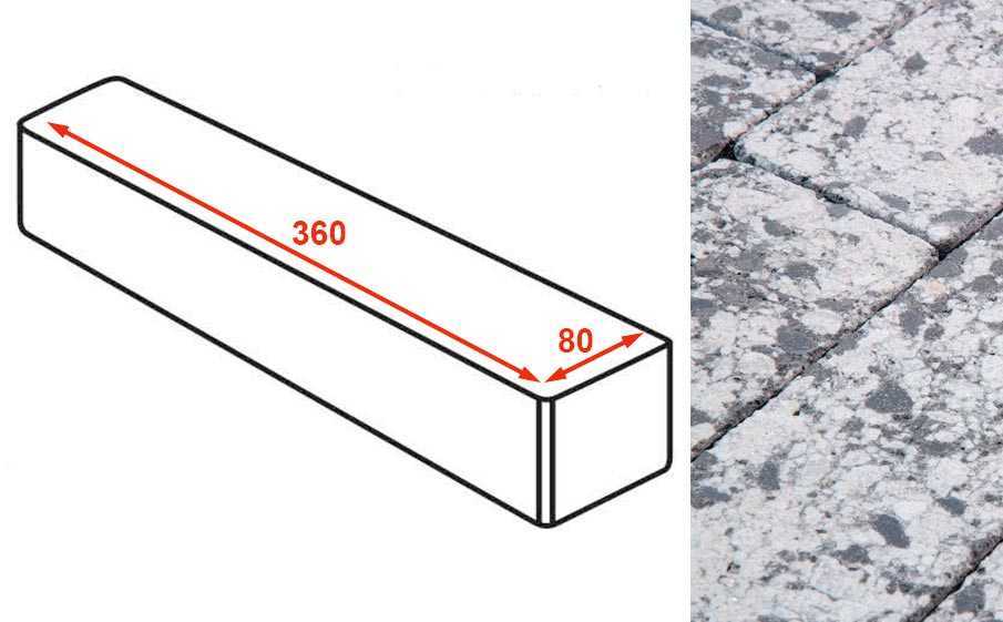 Плитка тротуарная Готика Granite FINERRO, ригель, Диорит 360x80x80 мм
